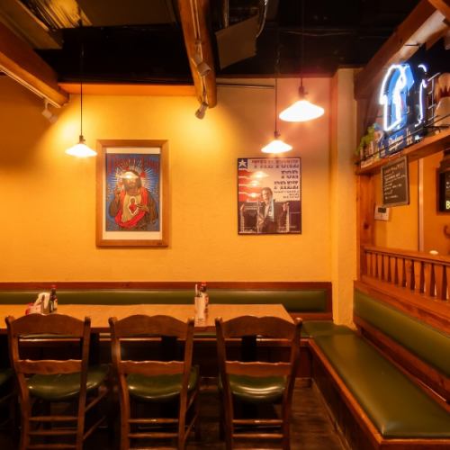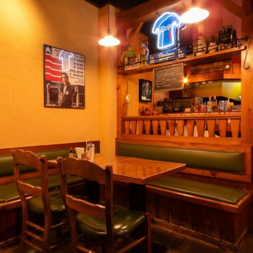 【温かみのある照明が心地いい】店内は、アートや装飾品が随所に散りばめられた、スタイリッシュでレトロなアメリカの雰囲気が融合した独特の空間です。友人や家族とともにくつろげる場所として、心に残るひとときを提供します。